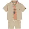 Driedelig setje (sand) - overhemd; t-shirtje en kort broekje