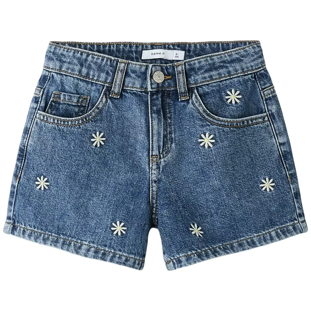 Korte spijkerbroek REGULAR FIT Bella (medium blue bleached denim daisy)